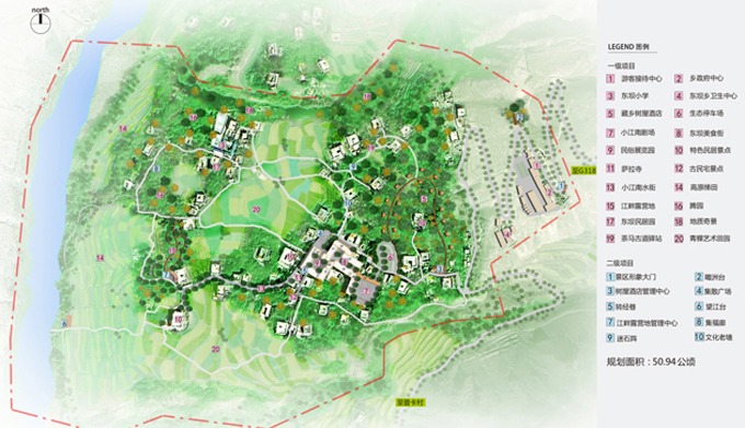 東壩鄉(xiāng)是難得一見的高山峽谷地貌,地處怒江峽谷之中,海拔從山口的4600米,降到谷底的2600米以鄉(xiāng)政府駐地(軍擁村)為中心,四周山巒疊嶂,形如蓮花,周圍的山川形成了姿態(tài)各異的動物形狀。結(jié)合藏東江南的瓜果之鄉(xiāng),遠(yuǎn)近聞名的古堡民居,古老神秘的苯教寺廟,茶馬古道的歷史遺存等旅游資源,以其獨有的生態(tài)高原綠洲為規(guī)劃基底,以鄉(xiāng)村主要道路為環(huán)線,通過串聯(lián)各民居景點,形成以線與組團(tuán)相結(jié)合的整體規(guī)劃布局結(jié)構(gòu)。